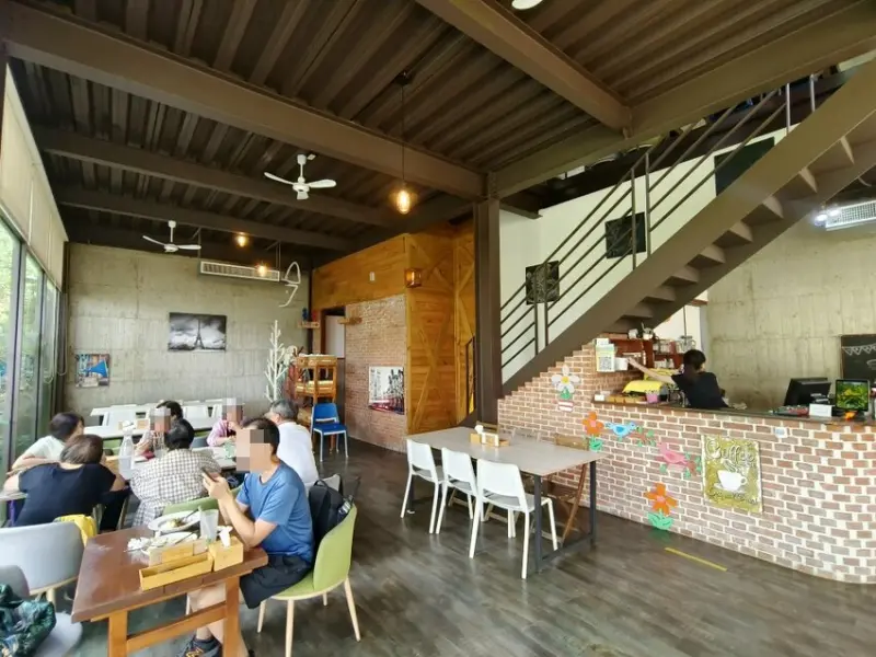 ▼森林中的景觀餐廳有兩層樓,套票午茶組合就在這裡享用,內容有橙香韓國麵包1個+橘子蛋撻1個+柳橙汁1杯。