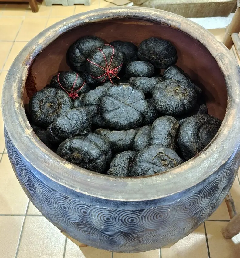 ▼這是存放酸柑茶磚的大甕,沒見過的大家覺得非常有趣,一陣猛拍~