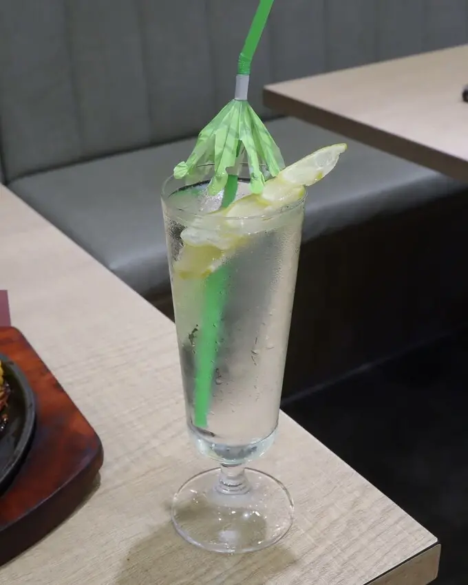 ▼沒想到這裡也有酒精飲品耶!「冰結檸檬沙瓦」裡頭加了自己醃漬的檸檬片,酸甜清爽很解膩。有點像七喜的味道,我很喜歡