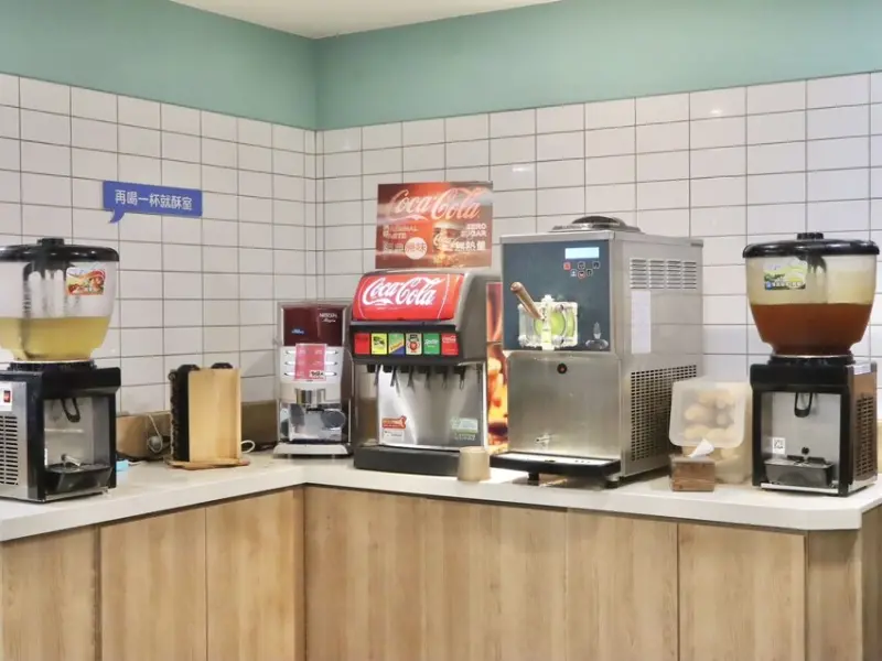 ▼連飲料品項都很多,除了可樂雞、還有咖啡機、茶飲