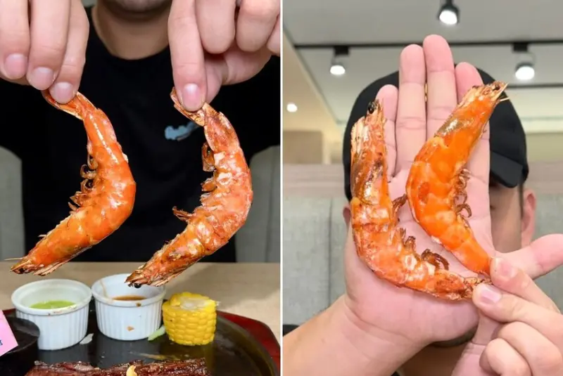 ▼套餐附贈的大白蝦真的超~大~用男友的手當比例尺就知道這size真的是白蝦裡的巨巨啦!而且很新鮮,蝦殼很好撥、肉質緊實Q彈很鮮甜