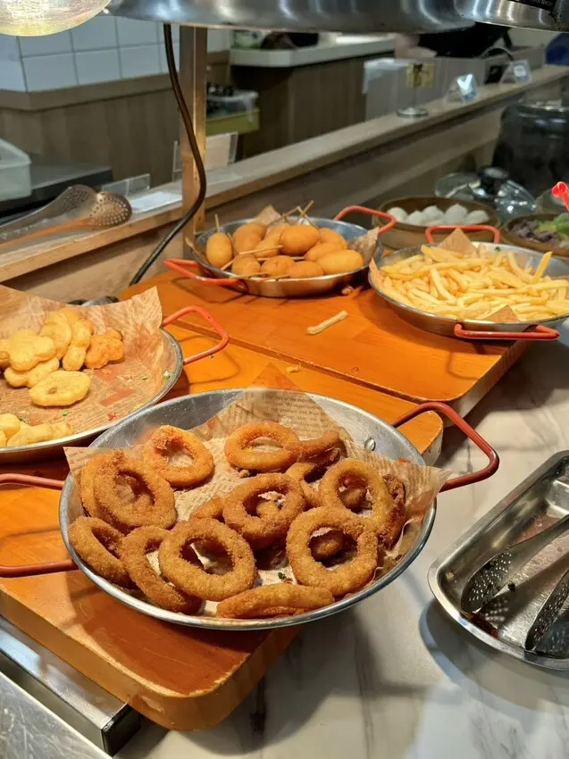 ▼再來當然要有經典炸物區啦,看著一個爸爸帶著小孩把一半的雞塊都拿光,炸的完全不輸麥X勞