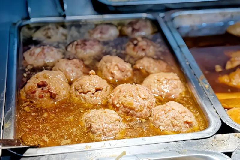 我很少在自助餐看到瓜仔肉丸!肉丸圓潤飽滿,是很多人都喜歡的家常菜,浸泡在湯汁裡看起來很濕潤~