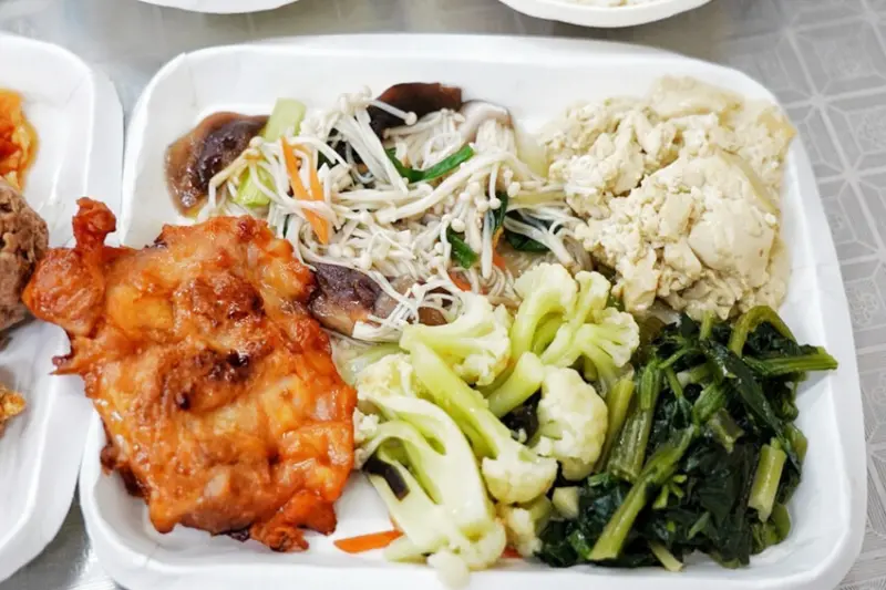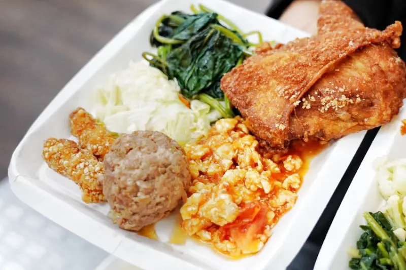 來這吃不用怕菜被夾完,菜盤會一直補,有煎魚、手工瓜仔肉丸、滷蛋、炒時蔬、炒牛肉、蕃茄炒蛋、紅燒肉、虱目魚肚、控肉、炸雞腿、油豆腐、蒸蛋…等,客人多菜色跑得快,不用擔心不新鮮~