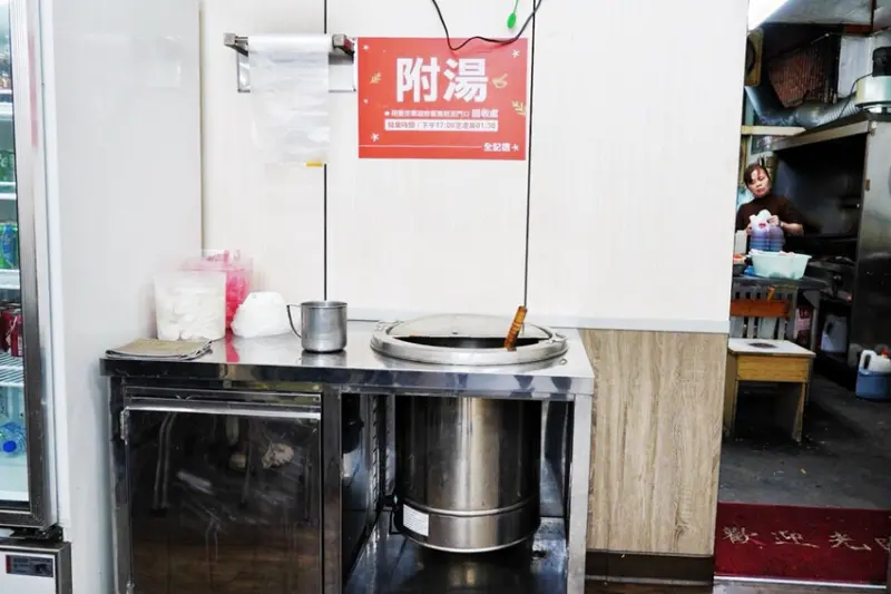 內用熱湯隨你喝到飽!晚上六點多時大湯鍋還是滿的,晚上十點大湯鍋已經快見底了~