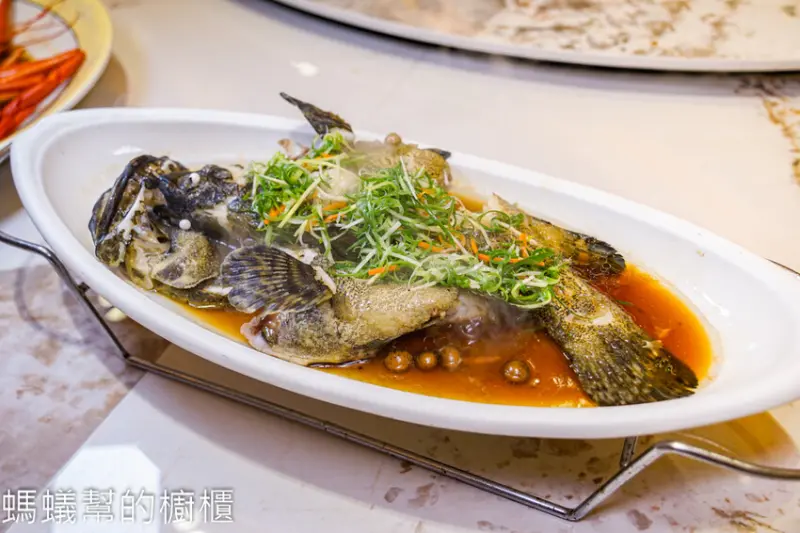 一樣式現撈的龍虎石斑,肉質是比較Q彈的,蒸熟鋪上蔥絲,淋上特調醬油加上破布子增加方位,淋上熱油提升香氣,簡單的調味吃出龍虎石斑最鮮甜的肉質跟風味。