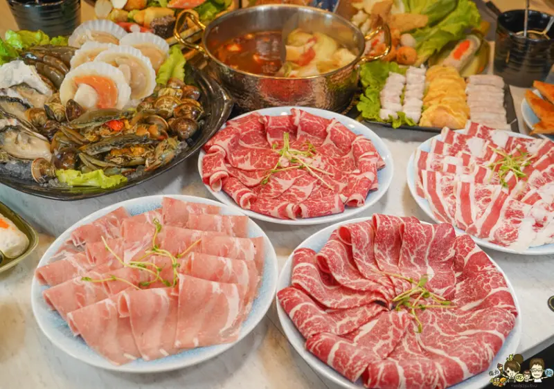 頂級雪花牛肉、翼板牛肉、無骨牛小排、頂級松阪豬肉、蝦兵蟹將總匯拼盤
