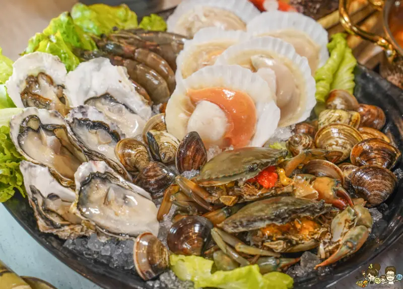 深海大扇貝5個、日本生蠔6個、Q彈鮮蝦5隻、新鮮蛤蠣20個