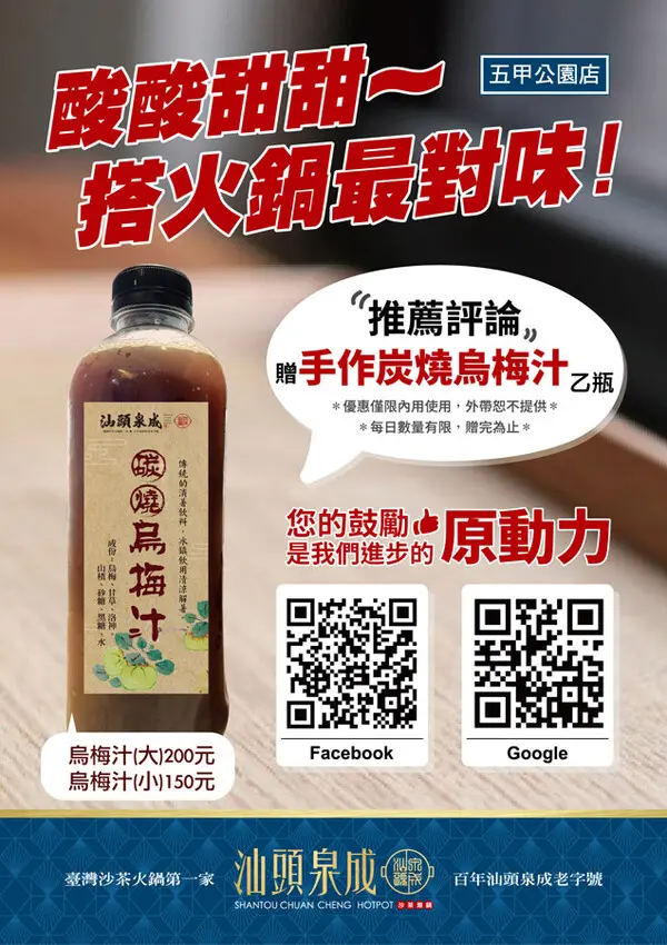 打卡評論免費贈送招牌 碳燒烏梅汁
