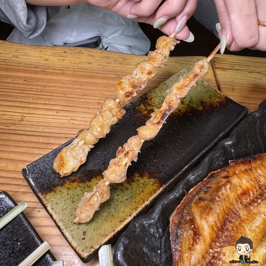 鹽烤雞肉串(160元/2串)酥脆的雞皮加上軟嫩多汁的肉質,也超下酒的