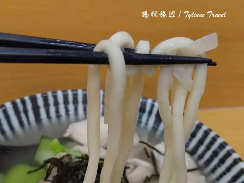 配軟硬適中的烏龍麵條,讓每口都特別過癮。湯頭加入了薑絲,香氣清爽又暖胃,還有火鍋料增添飽足感,整碗料多又實在!