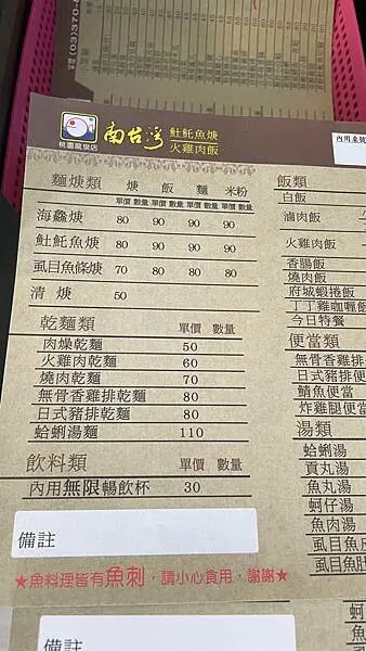 店外就能看到菜單,上面除了有招牌的𩵚魠魚羹,還有炸豬排等其他小菜。點小菜只要滿一百元,店家還會送上一碗白飯,旁邊還有碳酸飲料機,讓人感覺到物超所值。