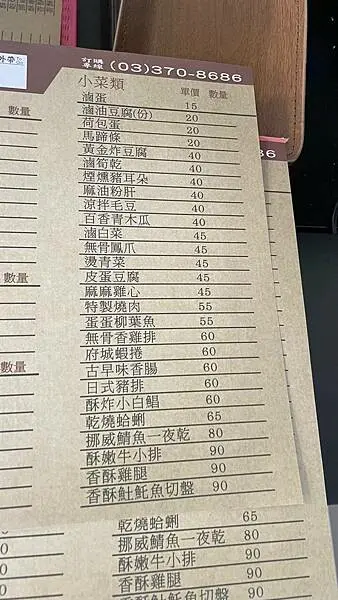 菜單包含飯、麵等主食,還有多樣的小菜。