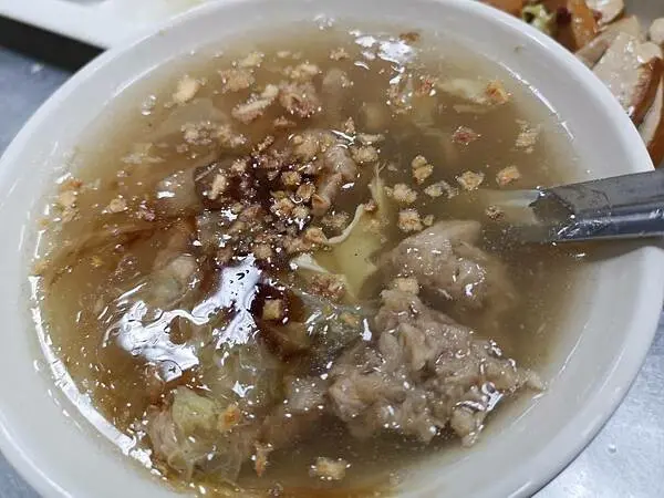 肉羹湯的湯頭滑順,鹹淡剛剛好,還可以依個人喜好加入烏醋或胡椒粉調味。我自己喜歡兩者都加,風味更豐富。肉羹的肉質軟嫩彈牙,魚漿與肉完美融合,大小剛好入口,口感令人滿意,是我非常喜愛的一道料理!