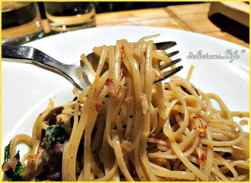所以吃起來軟硬適中,配合上墨汁與炒過的蒜頭增加香度,加上basil的香氣十足,