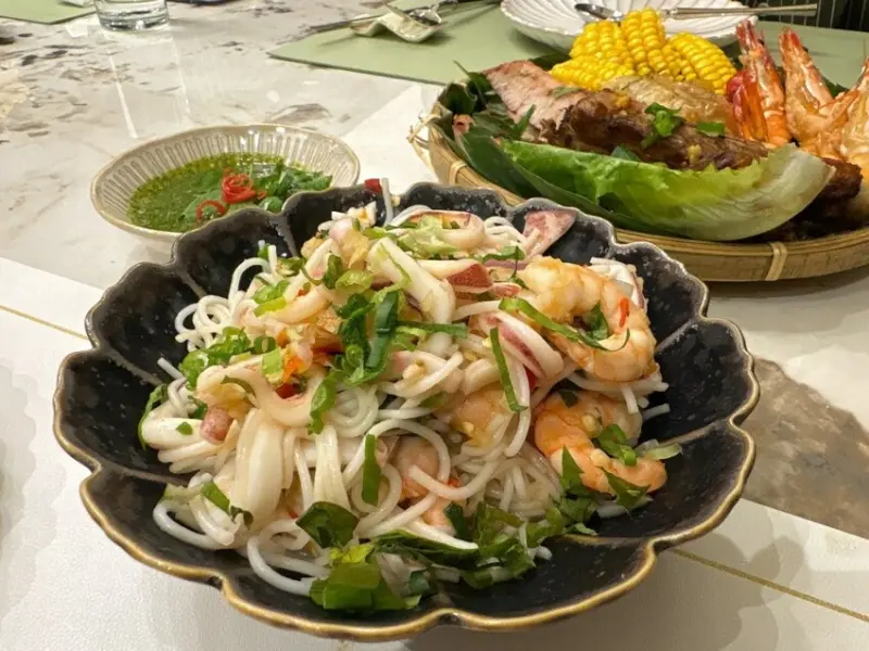 涼拌海鮮米線的食材豐富,除了Q彈的米線,還有新鮮的中卷等海鮮,每口都能同時吃到海鮮和米線,搭配酸辣醬汁清爽又涮嘴。
