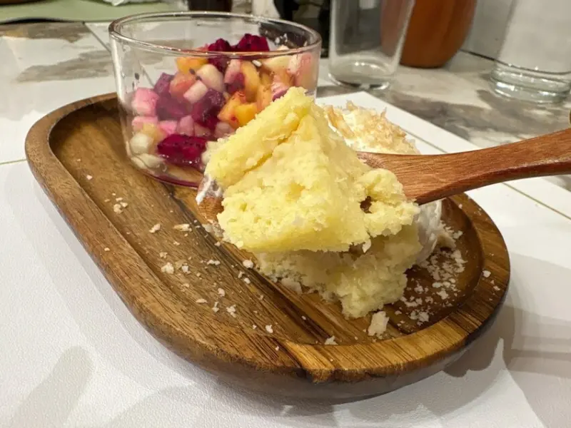 飯後甜點則是主廚現場製作的鮮奶油搭配水果,整體口感清新香甜,毫不膩口,是健康又營養的完美收尾。
