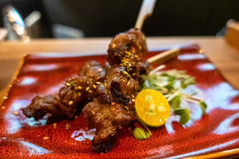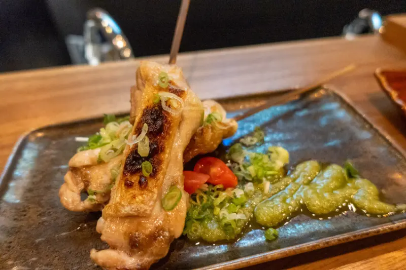這道雞腿串搭配三星蔥與特製蔥醬,肉質細嫩且多汁,帶著一點點炭火香氣。鹽味恰到好處,整體吃起來有點像蔥油雞的升級版,非常適合作為搭配清酒的下酒菜。