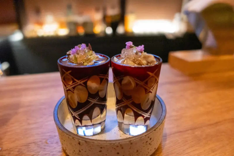 以Shot杯盛裝的生蠔,入口鮮甜滑嫩,帶有柚子醬的微酸風味,完全不腥,層次豐富,甚至讓不愛生蠔的人也會愛上!