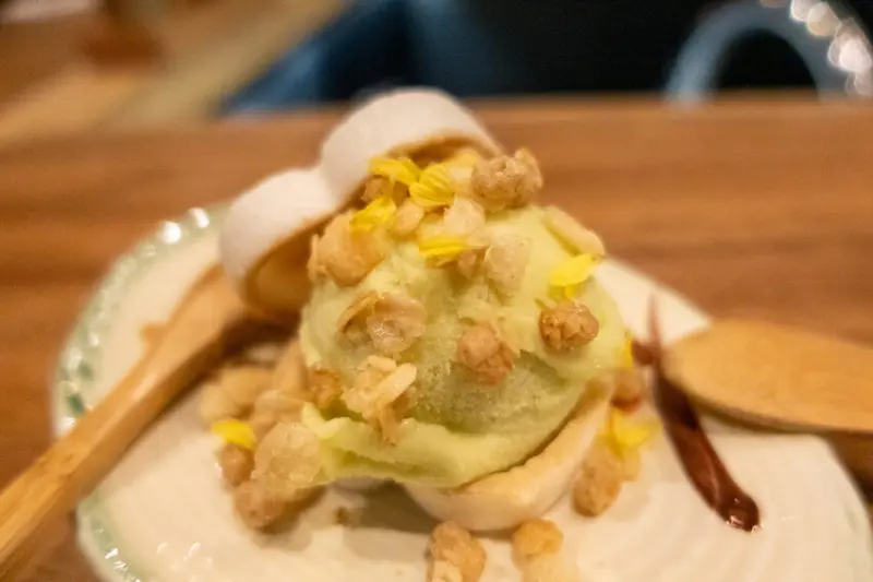 這道乳酪濃郁奶香十足,還帶有淡淡的煙燻氣息,細細品味後餘韻繚繞,無論單吃還是搭配清酒都很完美。