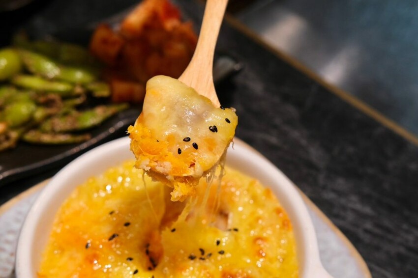 ▼蜂蜜芋頭地瓜起司是吃燒肉最完美的ending,熱呼呼拉起時有著拉絲效果,裏頭能吃到綿密的芋頭地瓜,同時伴隨淡淡的蜂蜜香,實在是太幸福啦!