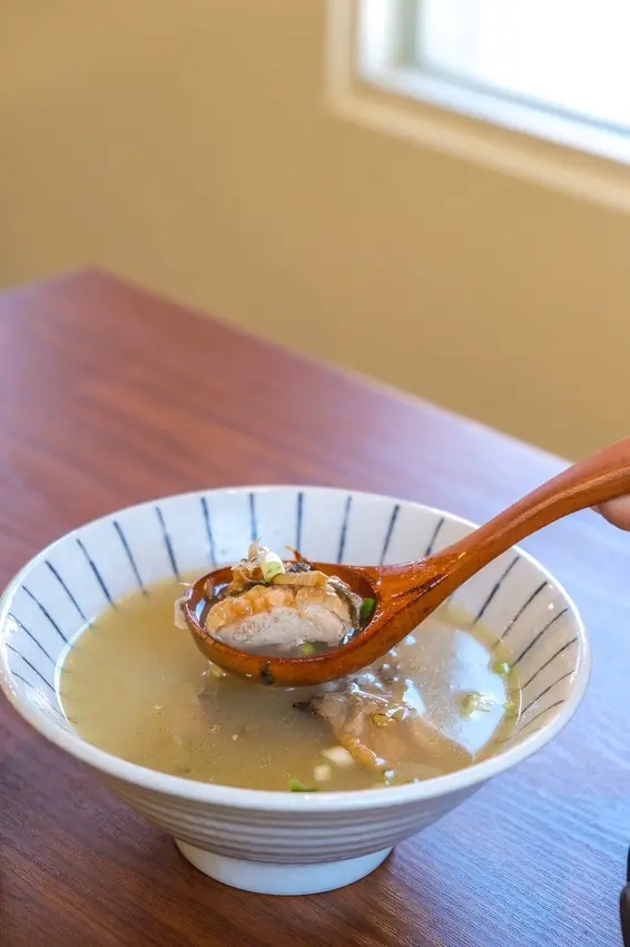 將濃郁雞白高湯與蒜頭費時熬煮🧄