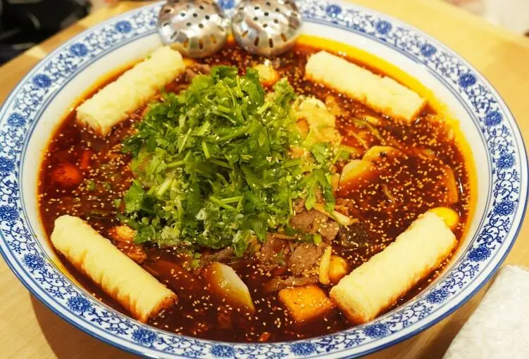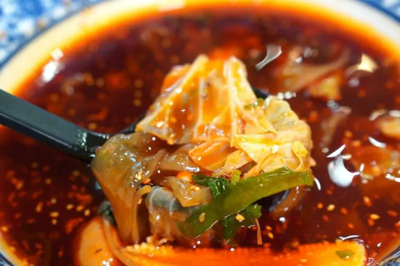 另外還可以吃到少見的豆腸、響鈴捲、魚豆腐、土豆片及藕片,浸泡在湯頭內,食材吸附湯汁,滋味鮮香,讓人直呼好吃。