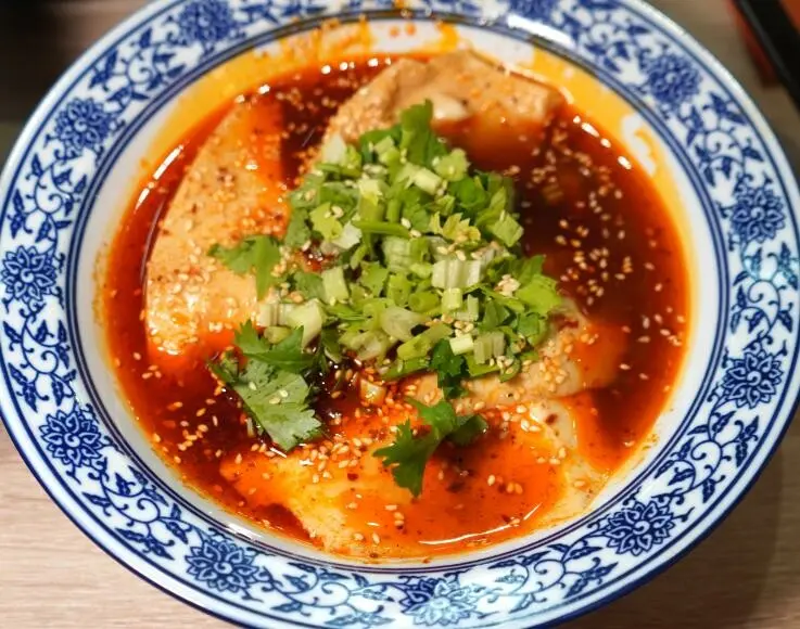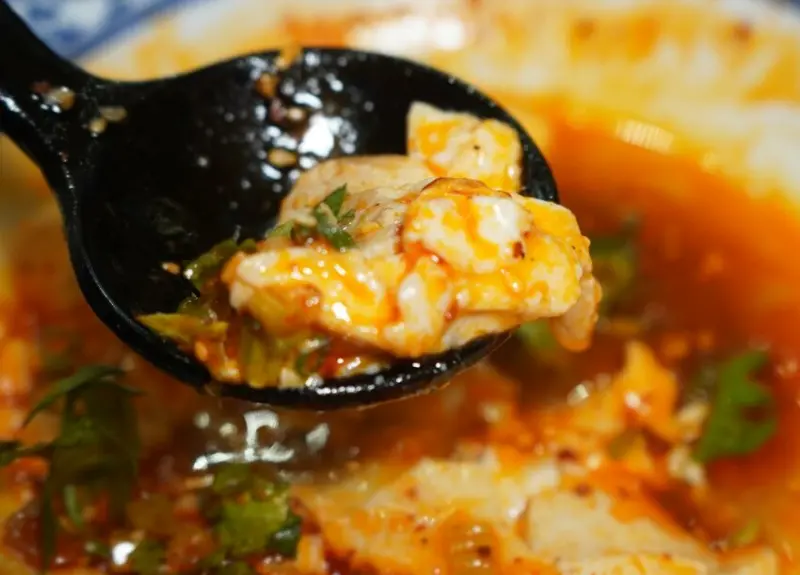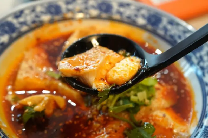 袁彬推薦必點,滑嫩豆花,擺在混合芝麻紅油的香辣湯汁,吃起來鮮香滑嫩,吃完還想再點一盤。