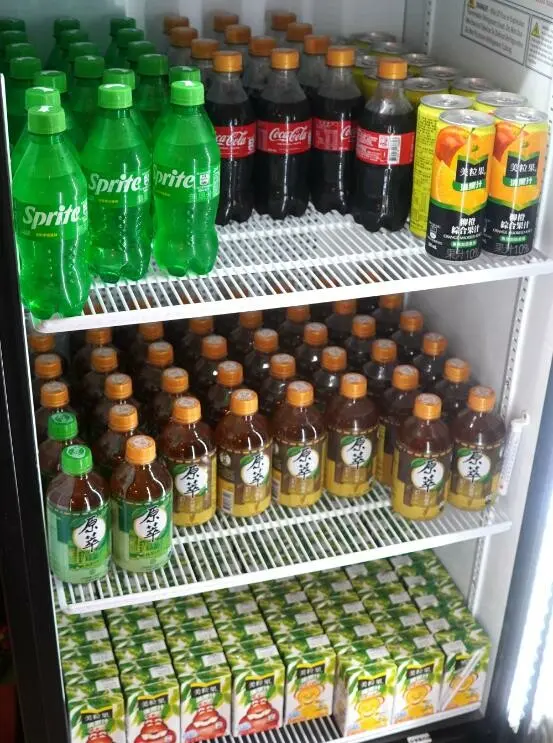 結帳櫃台在後方,還有一個擺放飲料的冰箱,價格在15元或25元之間。