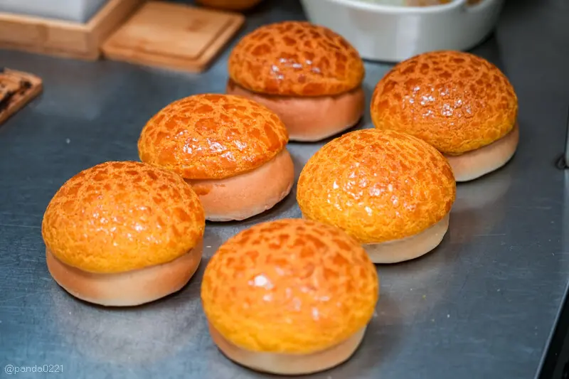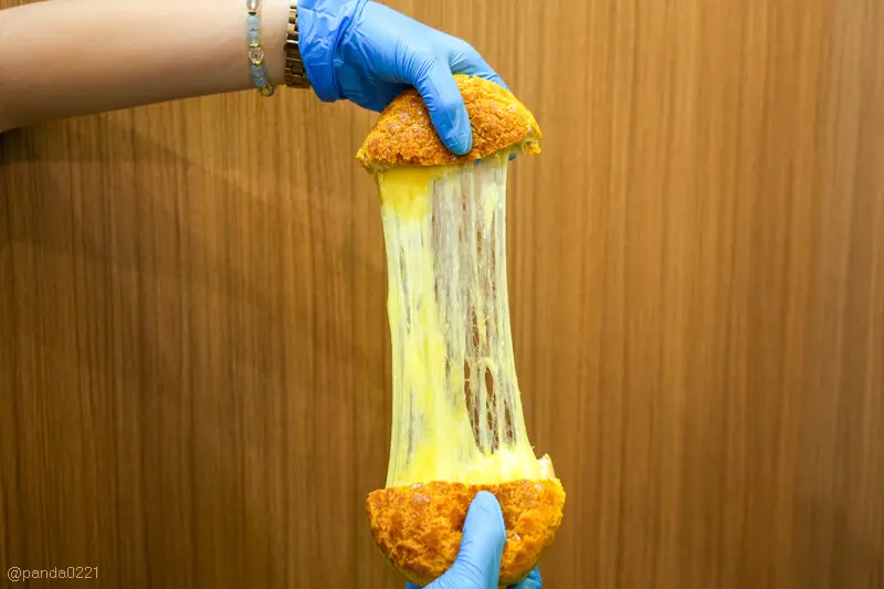 香脆特濃芝心菠蘿包,牽絲超長,真的是太犯規!用多種風味乳酪做的,一拉就能看到超濃的起司,完全不手軟。記得趁熱吃喔~冷掉的話起司會變硬,就不好吃了!