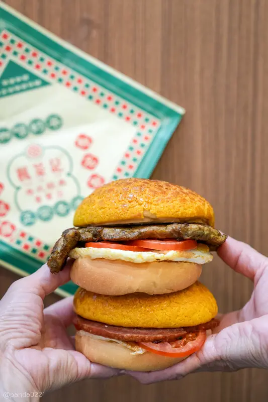 楓茶記的菠蘿包除了經典款,還有創意口味,運用美式漢堡的概念,將港式菠蘿包夾入午餐肉、豬排、雞排等,直接升級成豪華版,當作早午餐也很不錯!