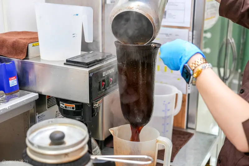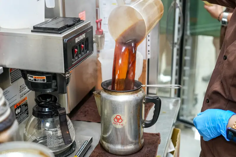 楓茶記冰火菠蘿油-桃園店的亮點還有現場沖拉的錫蘭紅茶,茶香濃郁,將紅茶的風味完全釋放,口感醇厚十足。