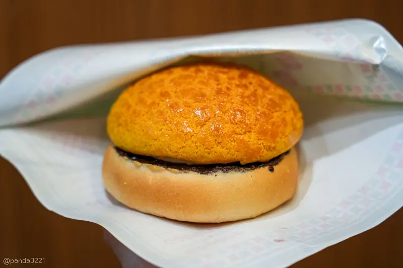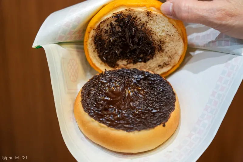 果醬菠蘿包有巧克力、草莓、花生和奶酥四種口味,我選了巧克力口味。楓茶記的巧克力微苦帶甜,巧克力醬很濃郁!