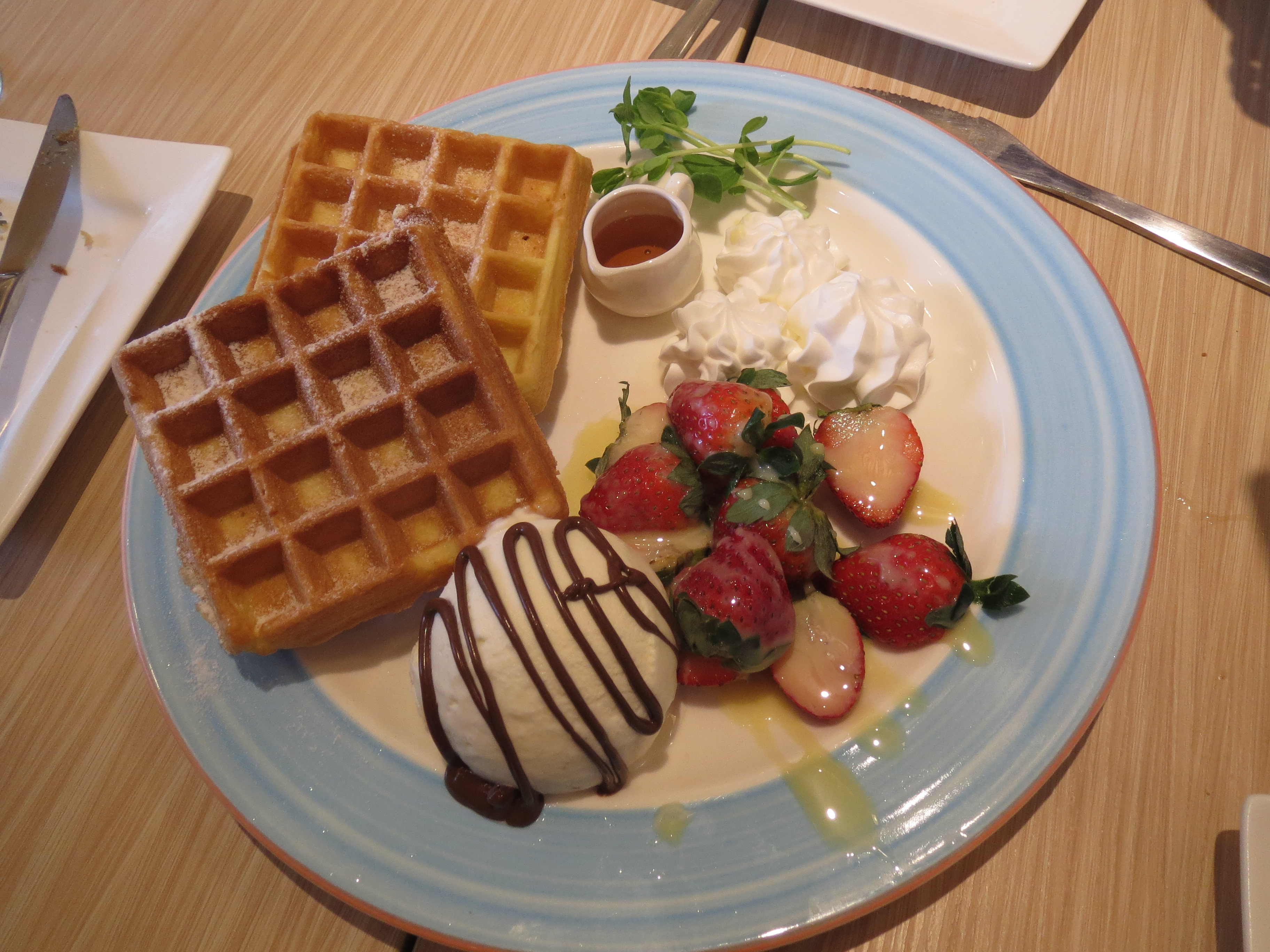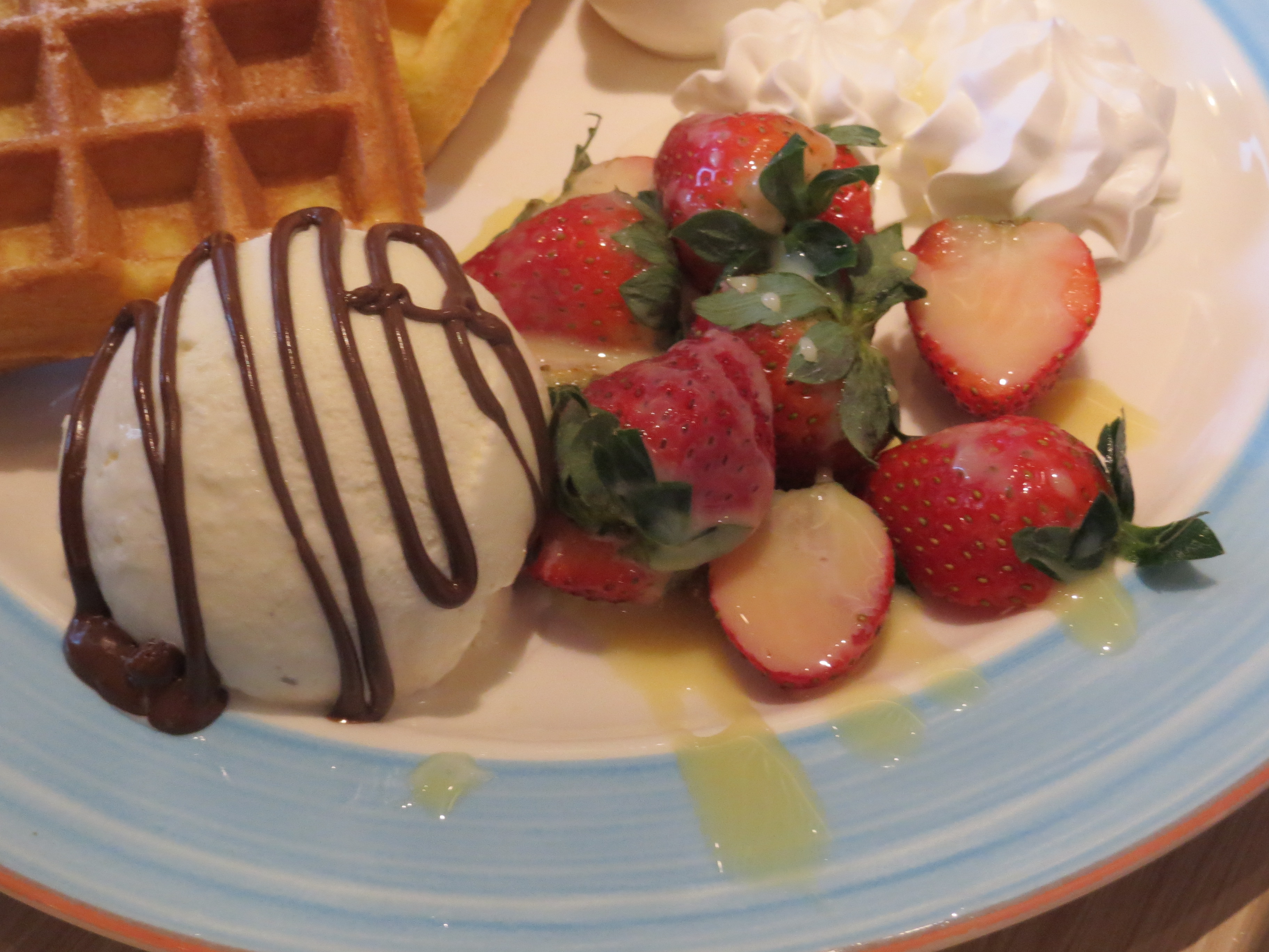 或許是由於香蕉船鬆餅先上,草莓也不是當季草莓,甜度不夠的關係,草莓鬆餅就沒有那麼讓我們驚艷。雖然冰淇淋還是一樣可口,但是草莓卻跟跟我期望的又大又甜有所差距。不過草莓控也不用因此而感到灰心,根據店員的說法,等到草莓季來臨的時候,店家就會換成台灣的草莓,那個時候甜度應該會非常明顯。