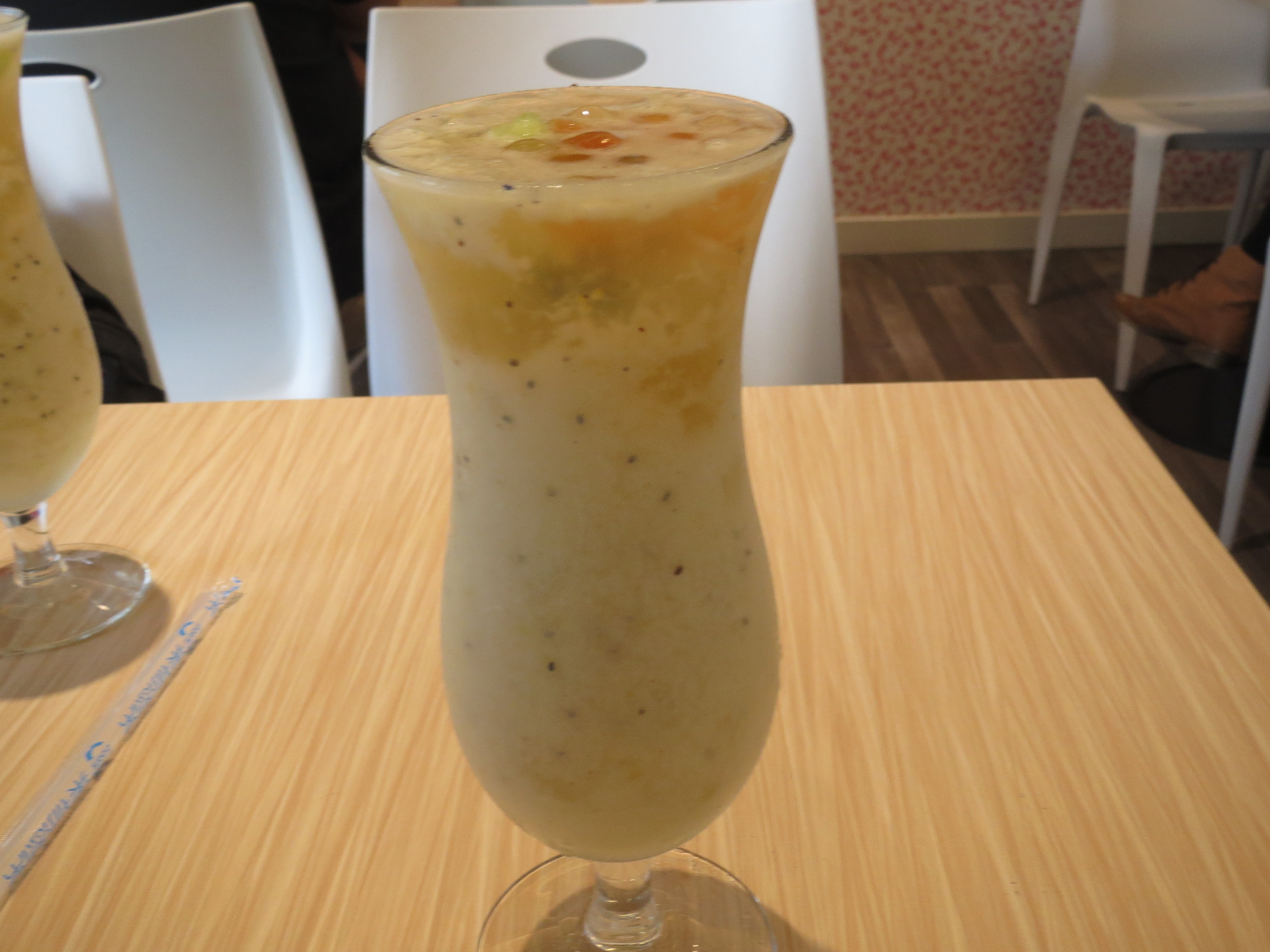 首先送上桌的,是兩杯店家號稱銷售前幾名的"奇異果檸檬切打"。原本第三杯服務人員也打算給我們同樣的飲品,但朋友想試試看其他人很推薦的芒果切打,所以第三杯是"愛文芒果切打"~