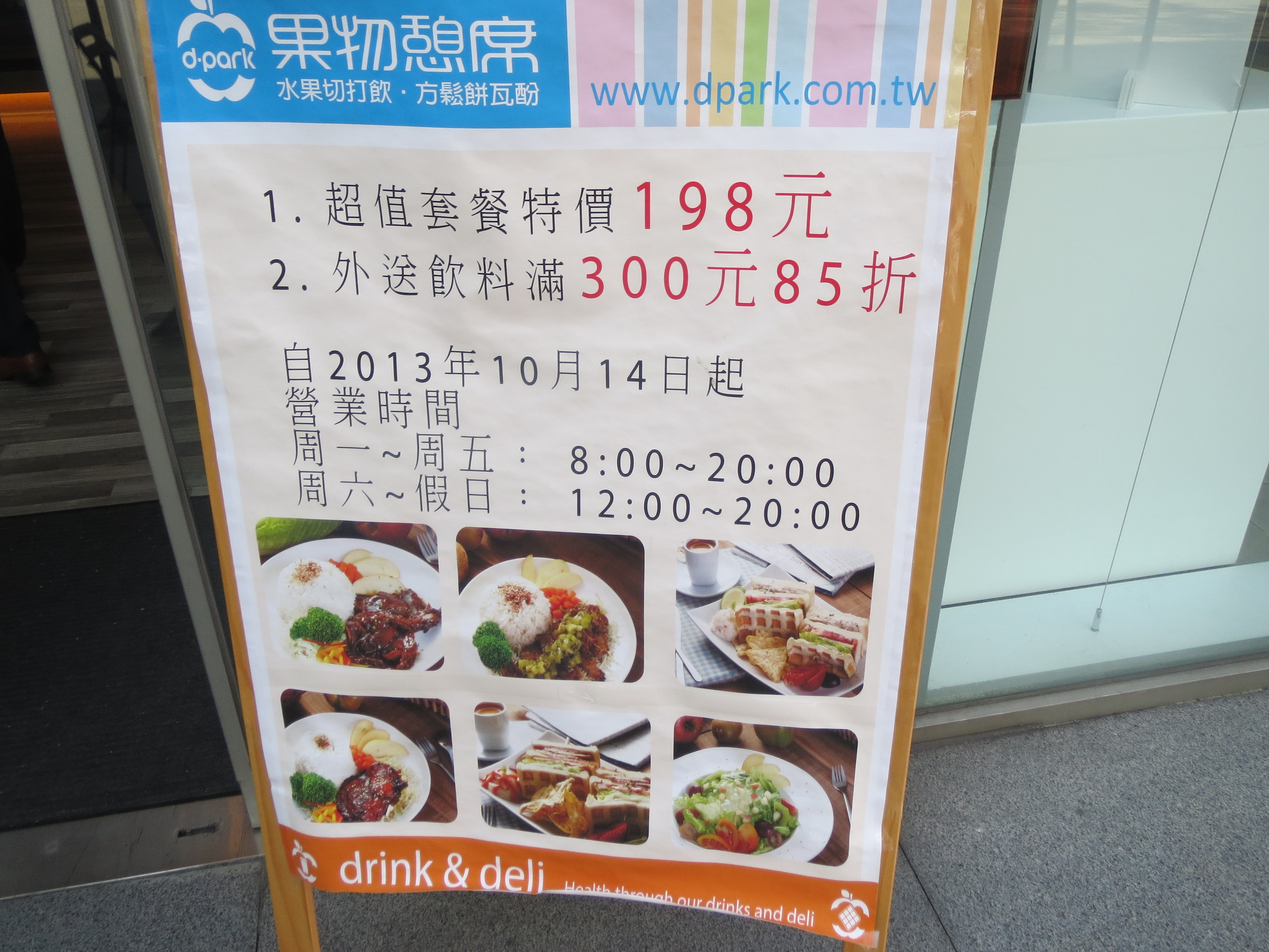 ~ 他們的店面外觀第一眼給我的感覺就是很休閒很舒適。店門外和不少餐廳一樣,擺放著一個寫著優惠訊息的小看板,以吸引經過的路人的注意。