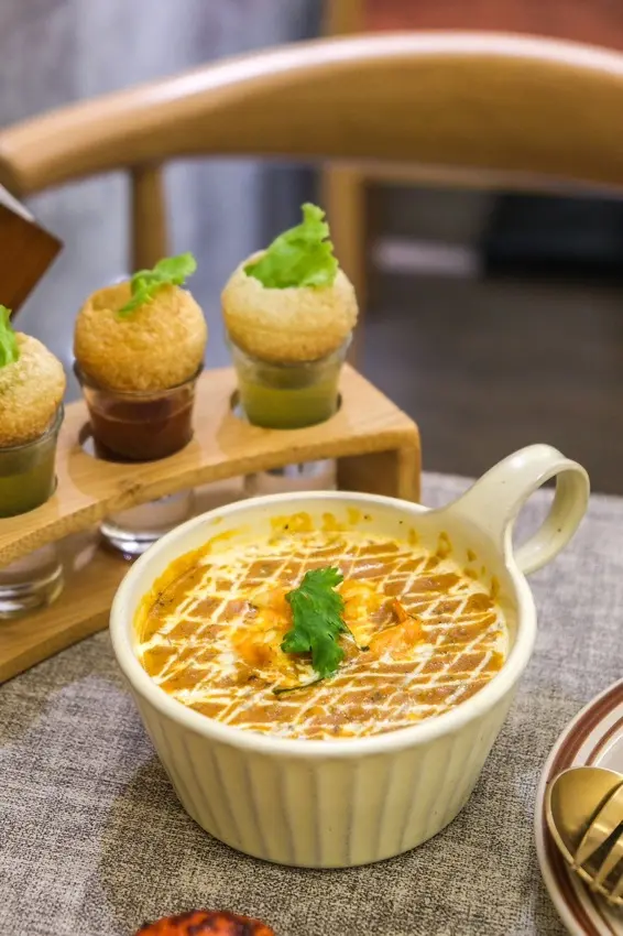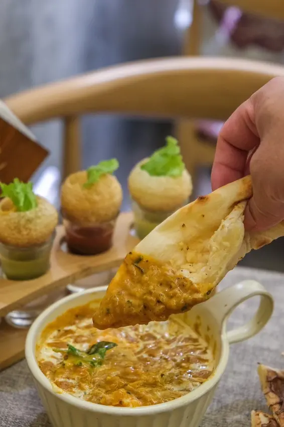 印度料理除了最經典的印度咖哩之外還有必點的甜鹹烤餅、香料烤雞肉塊及印度街頭小吃香料脆球‼️