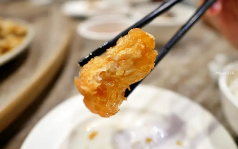 這道必吃招牌建議事先預訂!這其實是粵菜經典的「百花釀油條」,酥炸油條塞滿魚漿與蝦仁,淋上鹹甜醬汁,外酥內鮮,鹹甜交織,超級滿足!