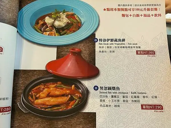 菜單設計精緻,每道餐點都有照片作為參考,選擇起來更直觀!餐廳還貼心提供素食選項,適合聚餐時有朋友吃素的情況,但他們的素食餐是以蛋奶素為主喔~
