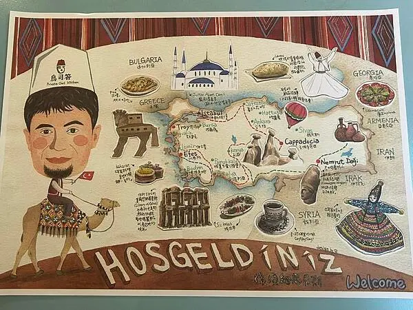 餐桌上的土耳其彩繪地圖餐墊超吸睛!我看到這張餐墊才恍然大悟,這家就是之前在嘉義吃過的那間餐廳!地圖設計很可愛,還能順便了解土耳其地理和文化特色呢!
