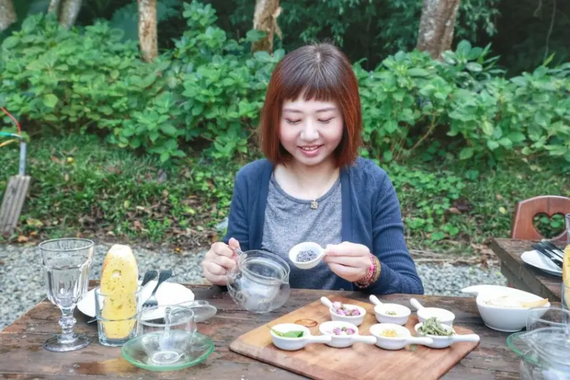 接著就是花草茶的體驗,自己摘取香草泡茶~最沉靜的香氣動動手也讓你曉得香草的運用也可以在食材上。