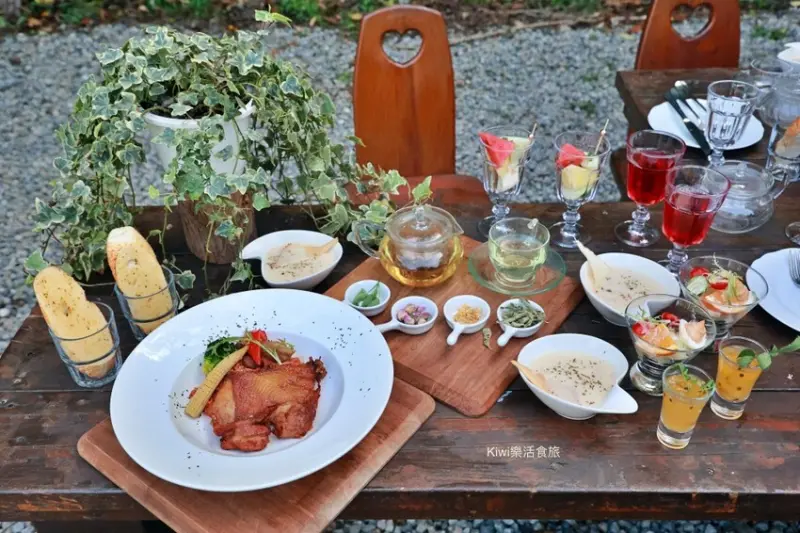 安妮公主花園與大自然結合坐在戶外吃著歐式美食感覺甚好,不僅如此唷!團體預約40人以上,一人1280元,也可以享用這樣的餐點~澎湃又健康安心~