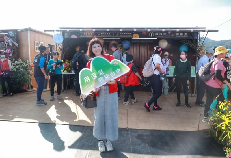 遊花毯也可以抽溫泉券,結合台中45家民宿協會推出六大特色遊程,結合「來台中・泡好湯」的推廣活動,在花毯節現場與遊客互動,下載大玩台中APP及與指定手舉牌拍照打卡,即可兌換台中合法溫泉旅宿的泡湯券,邀請來到山城賞花的各地遊客,也能順遊體驗台中好湯的魅力。
