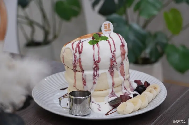 【美有計劃CAFE】的舒芙蕾均一價為300元,這樣層疊如山的舒芙蕾搭配滿滿水果,價格真的超級親民,難怪在地人都推薦我一定要來吃這間。