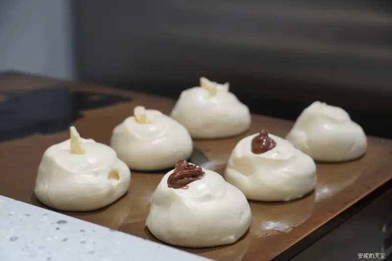 這天點了兩款舒芙蕾,只見主廚在白胖胖的麵糊裡加入了滿滿起司與巧克力,用料很實在。