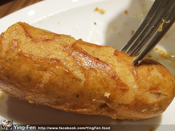 德國香腸,形狀好長又好粗,老闆挑選四十幾家店,最後選用自然原味香腸,外皮很有彈性QQ口感,裡面的肉味不會太濃,吃起來很自然的肉香味道非常好吃,和外面的香腸有點不太一樣。