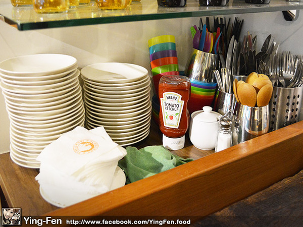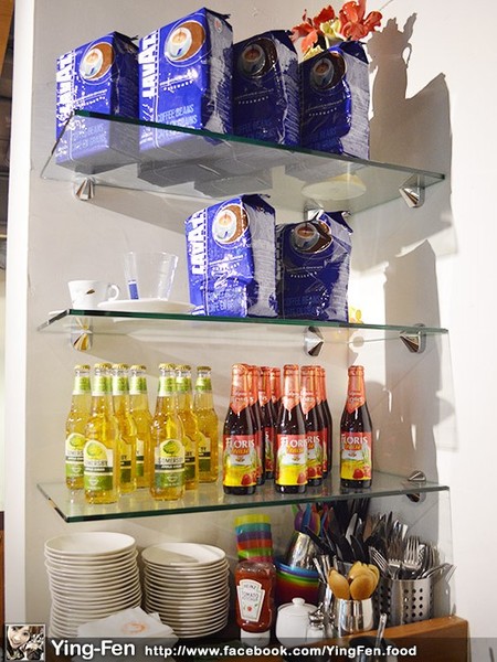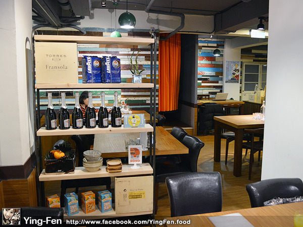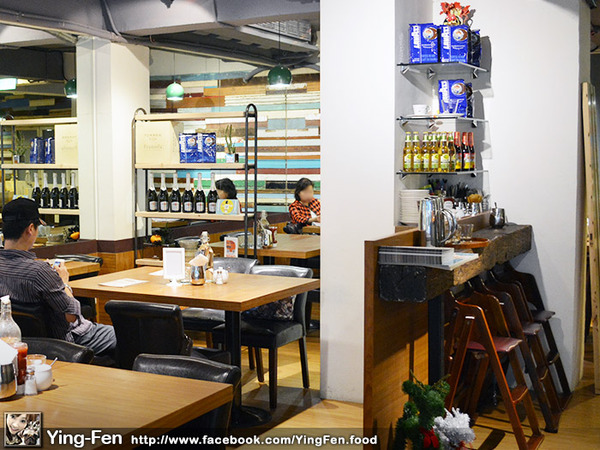 這家店的梁柱很多,他們利用梁柱旁邊有放些擺飾和架子,架子可以變成屏風效果,架子後面也有一個用餐空間,利用架子上面可以放置一些東西是很不錯的選擇。