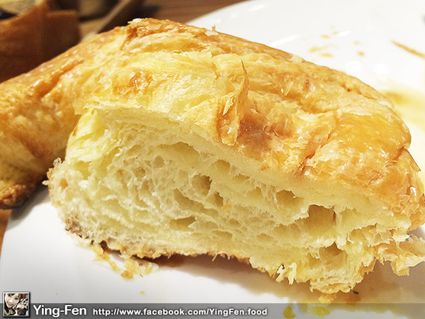 可頌麵包外皮酥脆,帶有奶油味道非常香很好吃。