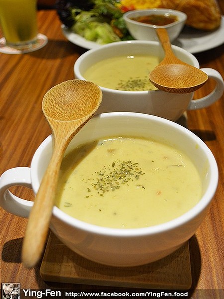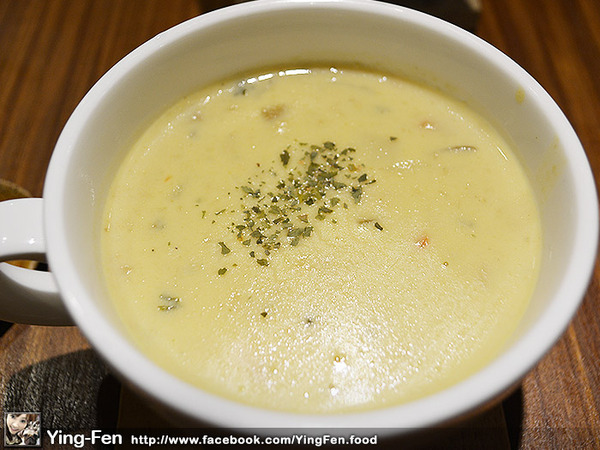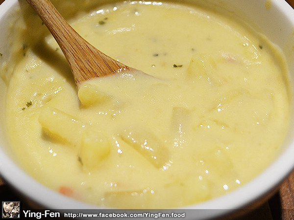 奶油蘑菇湯,蘑菇味道好濃郁,裡面有好多料,有蘑菇、洋蔥、紅蘿蔔和馬鈴薯,煮的好嫰好軟,湯帶有奶油味道很香很好吃。