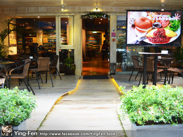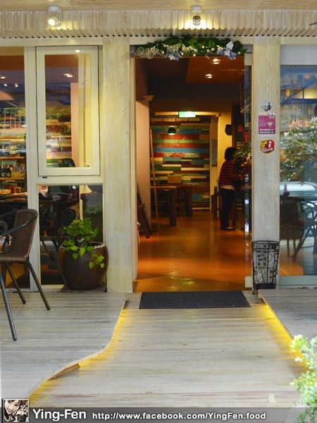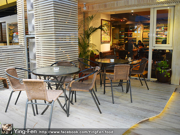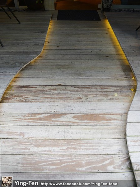 店大門口有很大的室外用餐區,今天剛好有看到外國人在這邊享用餐點,表示這家店外國人也愛,這家店門外幾乎都是用淺色系的自然木板材質,視覺看起來很自然舒服。